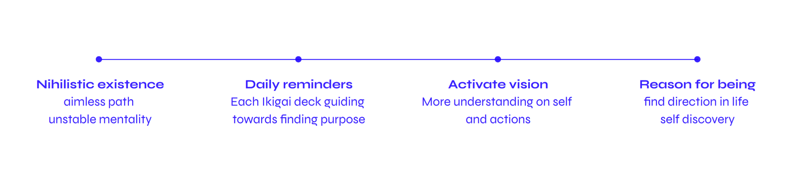 To amplify this method, many books have been written. I believe that reading this could be difficult and possibly not that captivating for the age group 16-26 therefore a set of card decks was chosen to give simple instructions and reminders on how to discover their reason for being. The cards are meant to be taken by chance each day while each one introduces a different subject every day. This helps the audience to find mental stability stability and vision.